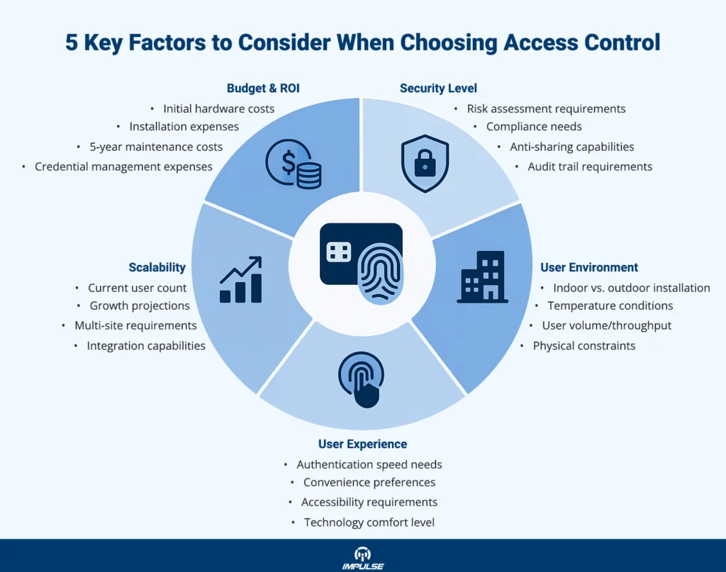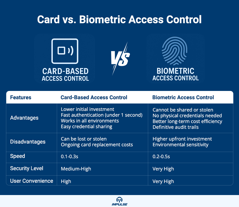 Choosing between card-based and biometric access control requires evaluating multiple factors specific to your organization’s operational context, security requirements, and budget constraints.