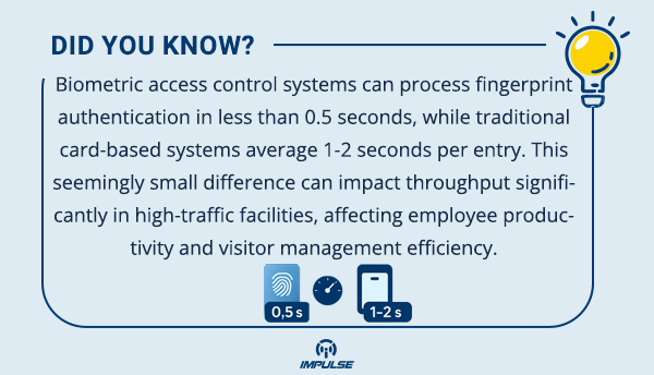 Biometric authentication requires 0.2-0.5 seconds for fingerprint systems and 0.5-2.0 seconds for facial recognition, depending on database size and algorithm complexity. While slightly slower than cards, biometric systems eliminate the fumbling delay associated with retrieving cards from wallets or bags. For facilities processing thousands of daily authentications, this user experience consideration proves significant.