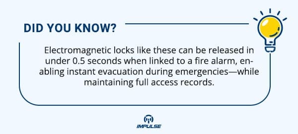 This locking system is essential in Access Control for Commercial Buildings that require emergency egress compatibility along with strong holding power.